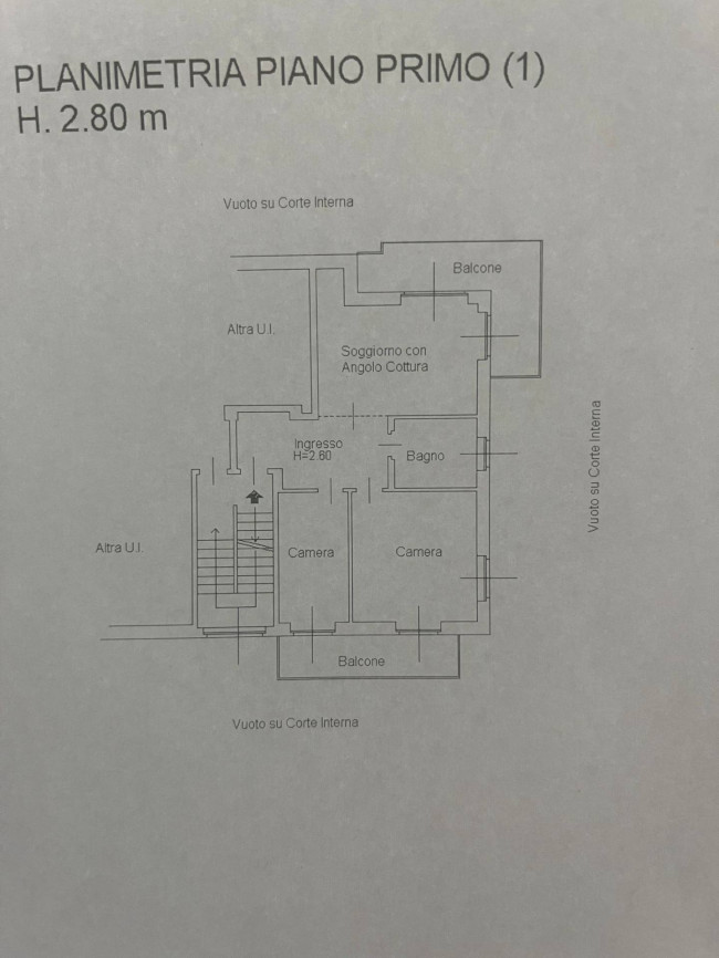 Proponiamo in Vendita, in piccola palazzina, trilocale al 1°piano (2°F.T.) libero su i tre lati con ampi balconi godibili. L'immobile ristrutturato in parte nel 2006 è così composto: ingresso su disimpegno, ampia zona giorno con accesso diretto ad un balcone fruibile sui due lati, cucina, una camera da letto ed un bagno; il secondo balcone è accessibile sia dalla cucina che dalla camera da letto. La metratura della zona giorno consente di creare un ambiente unico con angolo cottura, tavolo e zona relax, permettendo così di ricavare una seconda camera nell'attuale cucina. La pavimentazione della zona giorno, della camera da letto e del disimpegno risulta essere in parquet, le tapparelle sono quasi tutte elettriche.
