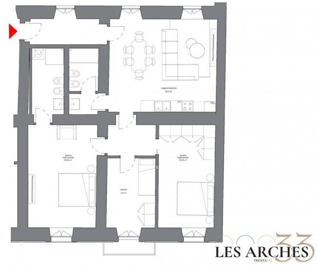L'Appartamento si trova nel condominio denominato Les Arches 33, un' ambiziosa iniziativa di riqualificazione edilizia che si inserisce armoniosamente in una delle aree più prestigiose di Torino, il Borgo Nuovo.